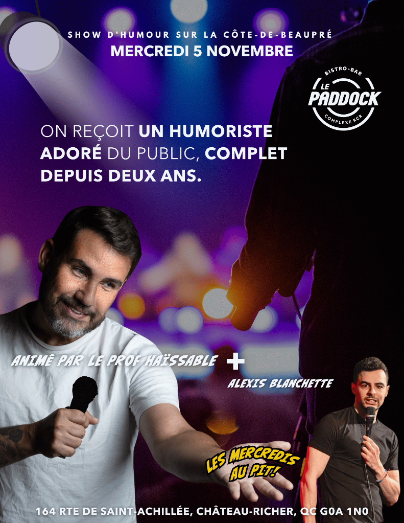 Pascal, le prof haïssable, débarque au Paddock du Complexe KCR pour le deuxième mercredi au Pit… tu ne veux pas manquer ça, une soirée d’humour sans filtre!